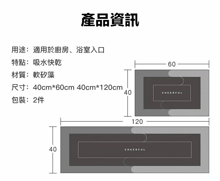 防油可擦免洗廚房浴室地墊