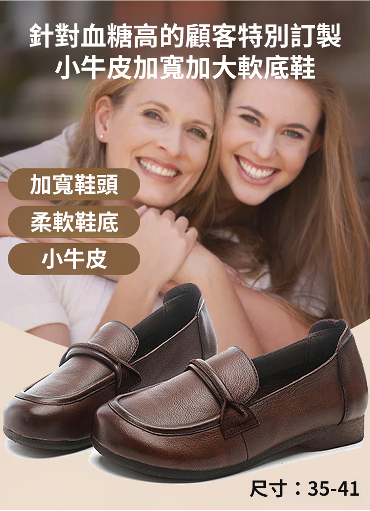 【腳腫脹訂製】小牛皮媽媽鞋
